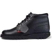 Kickers Leather Boots Size & Fit Standard fit - generous, comfortable size Available in sizes 3-8 Details Kick Hi Classic Boots by Kickers Black Cool, hard-wearing and incredibly comfy, these leather Kick Hi boots form Kickers are a great pair of everyday shoes and a solid pair for school for girls or teens with larger feet. Quality leather uppers ensure all-day comfort Trademark Kickers rubber soles for hardwearing, standout style Classic triple-stitch detailing Leather Kickers fleurette Embossed Kicke... - Manufacturers part numbers: 1KF0000120BTW_BLK|MTR33|Kickers_1KF0000120BTW42