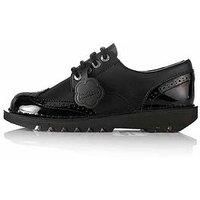 Kickers Leather Flat Shoe Size & Fit True to size - order your usual size Available in sizes 3-8 Lace-up fastening Details Kick Lo Brogue Leather Flat Shoe by Kickers Black Chunky cleated sole Patent toe and heel Classic brogue styling with perforated detailing Material Lining: Textile Sole: Other Materials Upper: Leather - Manufacturers part numbers: QFUMA|Kickers_11068940|110689_BLK