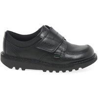 Have feet protected in the playground with the Kickers Kick Scuff Lo boys school shoes. Featuring soft leather uppers, the shoes are easy to care for and opt for comfortable textile linings and a padded collar. Chunky rubber soles offer grip granting properties, making them perfect for the school yard with a thick rip tape strap securing across the top of the foot. - Manufacturers part numbers: 115251_0001|Kickers_11525135.