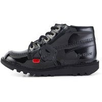 Kickers Patent School Shoes Size & Fit Standard fit Available in sizes 5 - 13 Younger Available in sizes 1 - 6 Older Details Kick Hi Patent School Shoes by Kickers Black Perfect for term time, this smaller version of the original Kick Hi shoes from Kickers features the same funky shiny patent leather uppers that catch the light brilliantly. High quality rubber outsoles offer excellent grip and long-lasting durability that easily stands up to life in the playground Finished with red and green Kickers tab... - Manufacturers part numbers: 115826|Kickers_11582634.