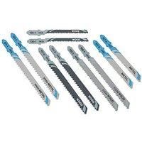 The DEWALT 10 Piece Wood and Metal Jigsaw Blade Set has been constructed for heavy duty cutting of variety of materials including aluminium mild steel soft and hard wood. The durable HSS and HCS jigsaw blades offer high durability and best cutting results in wood steel and non-ferrous metals. Made from fully hardened high-speed cut-to-length steel the blades deliver improved tool life. The universal T-Shank fitting suitable for use with corded and cordless jigsaws. - Manufacturers part numbers: DT2294-QZ|DT2294QZ