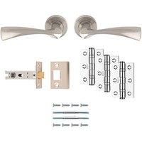 Pack containing everything needed to hang an internal door. Includes a pair of designer handles, and matching tubular latch and ball bearing hinges. Handles are secured with bolt-though fixings, preventing handles from falling off a hollow core door. For use on doors 35-44mm thick and up to 40kg. Supplied with all fixings. Suited thumb-turns available separately. For Internal Use 1-Box Solution For Use on Doors Up To 40kg Matching Finish on Handles, Hinges & Latch - Manufacturers part number: 908JA