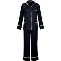The Hera Ladies Satin Pyjamas in Black, an elegant addition to our exclusive designer collection. Crafted from luxurious satin, this sophisticated set offers a silky-smooth touch that feels gentle against your skin. The classic black hue and tailored fit provide both comfort and a sleek, flattering silhouette. The Hera pyjama set is thoughtfully designed with refined details like contrast piping, delicate buttons, and a convenient breast pocket. Whether you're indulging in a relaxing evening or enjoyin...