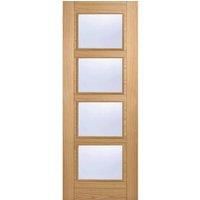 Featuring four large clear glazed panels and presenting a distinctive pre-finished Oak wood grain: this pre-finished oak fire door by LPD presents a unique design which is perfect for modern homes. The door is highly durable with a solid core, features a standard hardware pack of 3 hinges and arrives fully finished ready to hang. Features and Benefits Durable Design - With a solid core construction, the fire door is highly durable and resistant to expansion and contraction. Attractive Presentation - Pre...