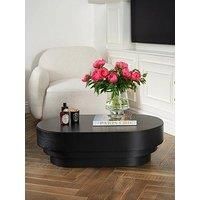 LPD Furniture Kuma Black Coffee Table The Kuma Coffee Table boasts a matte black wood grain finish and a striking multi-layered oval design. Compact yet statement-making, its neutral tone complements any space, offering versatile use and modern elegance Assembly: Ready Assembled Depth: 600 MM Height: 300 MM Width: 1000 MM Table Type: Coffee Matt Black wood grain effect multi layered oval design Neutral colour fits in with any design scheme Compact yet Statement-making Versatile Use Contains Lights: N