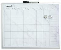 Enhance your planning with this marble effect magnetic calendar board, framed in sleek silver coloured aluminium. This board offers a marble-effect dry erase surface, featuring a monthly planner and notes section. Ideal for tracking appointments and ideas, it suits both professional and home settings. The set includes a dry erase marker, two magnets, and mounting hardware for easy installation. Perfect for those who value style and practicality. Includes accessories kit. Size H40.5, W51, D0.5cm. Fixing ...