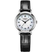 Rotary Windsor Leather Ladies Watch 24Hr Display: N Width: 27 MM Case Diameter (in cm): 2.7 Case Shape: Round Fastening Type: Strap Buckle Glass: Sapphire Movement: Japanese Quartz (battery) Strap Material: Leather Water Resistant: Y Bezel Type: Fixed