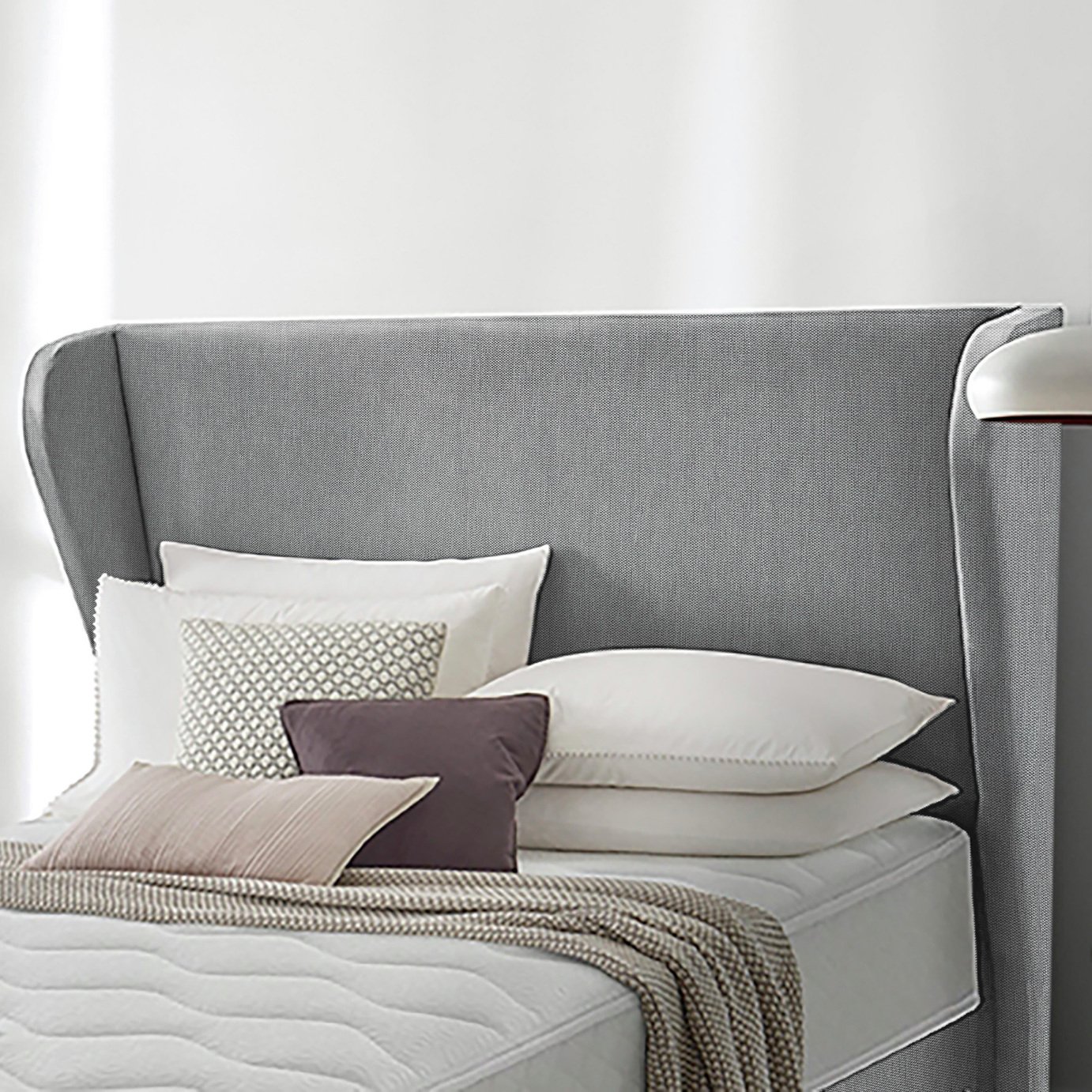 Becoming an instant focal point of any bedroom, the Falcon floorstanding headboard from Silentnight features a smooth minimalist design with prominent deeply padded winged sides. With a luxuriously padded back-rest relaxing in bed watching TV or reading a good book has never been more comfortable Matching your bedroom colour scheme is just a click away, with multiple to choose from in Silentnights extensive selection. Due to the winged design, this headboard is not compatible with divan beds with 4 full...