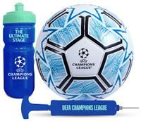 Embrace the excitement of UEFA Champions League with this officially licensed gift set. Featuring a 500ml water bottle, a size 5 football, and a ball inflation pump, its the ultimate package for football enthusiasts. Stay hydrated in style, perfect your skills with the quality football, and keep it ready for action with the included pump. Whether for practice sessions or matchday, this set embodies the spirit of the Champions League, making it an ideal gift for fans seeking both utility and passion in t...