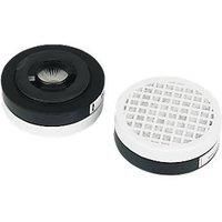 Pair. High capacity pleated filter cartridge that will outlast single shift use disposable masks. Filters need to be changed when blocked. FFP2 equivalent protection. - Manufacturers part number: 66435