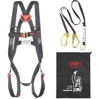 Fully adjustable harness with 2-points of attachment. Designed primarily for the non-professional user, needing safety for a particular job. Complete with 1 steel karabiner and 2 steel scaffold hooks. Supplied with JSP woven drawstring bag. 2m Polyester Twin Tail Shock-Absorbing Fall Arrest Lanyard Terylene Adjustable 2-Point Harness With Draw-string Bag Storage - Manufacturers part number: 6583F