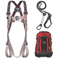 Lightweight fall arrest kit with 2 points of attachment. Equipped with features that provide full comfort and ergonomics to the wearer. Black and grey colouring for ease of identification between the shoulder and leg straps. Supplied with JSP rucksack. 2m Polyester Shock-Absorbing Fall Arrest Lanyard Terylene Adjustable 2-Point Harness With Backpack Storage Rated 136kg - Manufacturers part number: 7700F