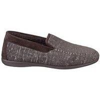 Cotswold Men's Slippers Size & Fit Standard fit Available in sizes 6-12 Details Stanley Men's Slippers by Cotswold Brown Inspired by the cosy wintry nights in Cotswold cottages Subtle contrast stitch moc toe Understated check print Tonal overlays add countryside style Material Inspired by the cosy wintry nights in Cotswold cottages, comes this luxurious mens loafer slipper with subtle contrast stitch moc toe. An understated chequer tint adorns the upper whilst tonal overlays add countryside style. Mat...