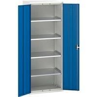 This Bott Verso Cupboard features a robust fully welded steel housing. It is finished with a durable powder coat paint in RAL 7035 light grey and RAL 5010 gentian blue. The cupboard mounts directly to the frame of the Verso framework and cantilever bench ranges to create an impressive storage workbench suitable for a variety of workplace environments. This Bott Verso Cupboard has two reinforced doors with 4 adjustable height galvanised steel shelves (75kg U.D.L.). - Manufacturers part number: Bott_