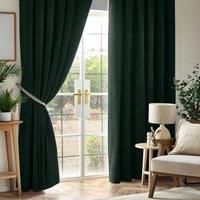 These ready-made blackout curtains feature a sophisticated triple-woven chenille construction that effectively blocks light and enhances privacy in any room. The sumptuous fabric delivers both visual depth and tactile appeal, whilst the blackout lining provides thermal benefits to help regulate room temperature across seasons. Whether for bedrooms, media rooms, or spaces demanding complete darkness, they offer a compelling blend of performance and elegance. The rich green tone works seamlessly with dive... - Manufacturers part number: ASR3BCHENILLETRIPLEWOVENGREEN0023