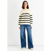 Indulge yourself in comfort with our Cream Stripe Cable Knit Button Oversized Jumper. This casual yet bold jumper features a trendy cream stripe design, cable knit texture, and oversized fit with button detail. Stay warm and stylish all winter long. | Gini London Women's Cream Stripe Cable Knit Button Oversized Jumper | Size: Medium/Large - Manufacturers part number: Gini London_5039771694199