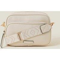 At-the-ready to complete any outfit, this bag makes life a little easier. It presents a faux leather finish with gold-tone hardware and a zip pocket to the front. Complete with a zip closure and dog clip fastenings on the adjustable patterned strap. | Accessorize Women's Dina Double Zip Cross-Body Bag in Cream - Manufacturers part number: Accessorize_5045464571715