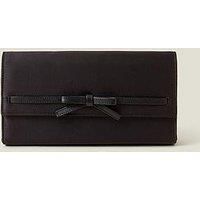 Cocktail party essential. The perfect pick to accompany your fave LBD and other party looks, this clutch bag is designed in black satin with a faux-leather bow detailing the fold. Complete with a golden chain strap and magnetic button fastening. | Accessorize Women's Bow Satin Clutch Bag in Black - Manufacturers part number: Accessorize_5045464571739
