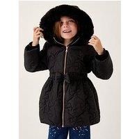 Monsoon Girls Bow Waisted Quilted Coat - Black How chic is this Featuring a bow-inspired quilted design and waistband, this A-line coat is complete with a super soft faux fur finish around the hood. Keeping them snug and stylish for every school run and beyond! Material Content: Lining: Polyester 100%, Shell: Polyester 55%, Polyester 45% Washing Instructions: Machine Washable