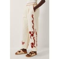 Dress code: Smart, summer, chic. Decorated with embroidered florals over the soft cotton fabric, these trousers are slung high on the waist with a wide leg fit for all-day comfort. Create a cool co-ordinated look with the matching Emilia Floral Embroidered Jacket. Ivory | Monsoon Women's Emilia Floral Embroidered Trousers Ivory | Size: Large - Manufacturers part number: Monsoon_5045464730846