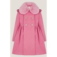 Monsoon Girls Natalia Coat Size & Fit True to size - order your usual size Regular fit Available in sizes 3-4 years - 12-13 years Details Girls Natalia Coat by Monsoon Pink Detachable faux fur collar Long sleeves Fixed hood Double breasted fastening Material & Care Material Content: Outer: Polyester 50%, Polyester 50%, Lining: Polyester 100% Washing Instructions: Machine Washable