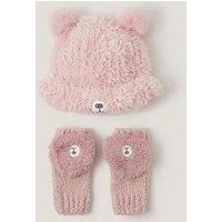 Monsoon Girls Fluffy Teddy Hat And Mitten Set Size & Fit Available in sizes 3-6 - 10-13 Years Details Girls Fluffy Teddy Hat And Mitten Set by Monsoon Pink Fluffy knit fingerless gloves with faux fur mitten top Fluffy knit hat with faux fur pom-poms Embroidered bear nose design Material & Care Material Content: Composite: Polyester 100% Washing Instructions: Machine Washable About the brand: