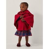Monsoon Baby Girls Cape With Velvet - Red What great taste you have! Dress them like they're in a fairy tale with this beautiful cape coat. Designed in red, it features a collared neckline, cape-like sleeves and a velvet bow on the front. Material Content: Lining: polyester satin 100%, Shell: Polyester 100% Washing Instructions: Machine Washable