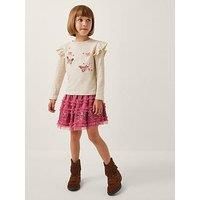 Monsoon Girls Butterfly Top And Skirt - Pink Flutterbies! A cute outfit for any of their weekend plans, this set includes a long sleeve butterfly top and tulle skirt, decorated with sparkly sequins and frills. Material Content: Outer Skirt: Polyester () 100%, Top: Cotton (b) 98%, Metallised Fibre 2% Washing Instructions: Machine Washable