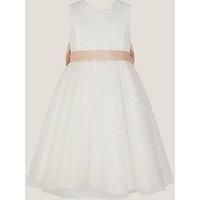Big dress for the big day! Designed with a sleeveless lace bodice and voluminous tulle skirt, this dress is perfect for wedding celebrations. Finished with an XL ribbon bow trailing down the back. Ivory