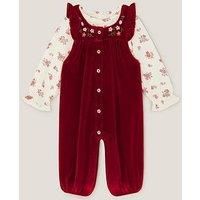 Monsoon Baby Girls Christmas Velour Embroidered Dungaree - Red Easy peasy outfitting. Welcome your little one into the world in style with this sweet set. Featuring a long sleeve floral top and soft velour dungarees, decorated with floral embroidery and frilly shoulders. Cute, right Material Content: Shell: Cotton 100% Washing Instructions: Machine Washable