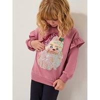 Monsoon Girls Christmas Santa Embroidered Sweat - Pink Ho Ho Ho! A fun layer for them to wear any day in December, this sweatshirt features a Santa design, embellished with sparkly sequins and gold pearly beads. Made from soft cotton, the shoulders are trimmed with ruffles, too. Material Content: Shell: Cotton 100% Washing Instructions: Machine Washable