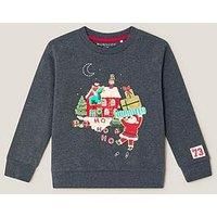 Monsoon Boys Christmas Santa Scene Sweatshirt - Grey Ho Ho Ho! Ready for them to wear every day in December, this sweatshirt features a design of Santa delivering presents for the whole family. Made from soft cotton in a dark grey colour. Grey Material Content: Shell: Cotton 100% Washing Instructions: Machine Washable