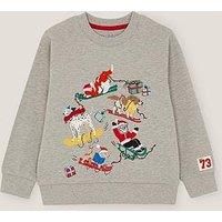 Monsoon Boys Ski Dogs Christmas Sweatshirt - Grey Destination: Santa's Grotto. Showcasing a festive graphic of pups and Santa hitting the slopes on sledges and skis, this sweatshirt is a paw-some pick for Christmastime. Grey Material Content: Shell: Cotton 100% Washing Instructions: Machine Washable