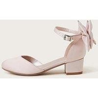 Monsoon Girls Sara Satin Bow 2 Part Heel Shoes - Pink Made for twisting and twirling. They spend all day on the dancefloor in these darling heels. Featuring a round covered toe and small block heel, they're finished with a dusty pink bow on the back of the heel. Fastens with a pin-buckle. Material Content: Upper: Satin 100%, Lining: Polyurethane (PU) 100%, Sock: Polyurethane (PU) 100%, Sole: Thermoplastic Rubber (TPR) 100% Washing Instructions: Wipe Clean