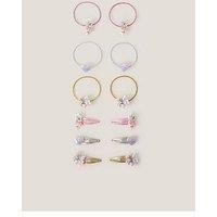 Monsoon Girls Fairytale Hair Set - Multi *GASP* A fairy princess! Adding endless magic to their everyday, this set of hair accessories includes six bobbles and six hair clips, all with glitzy finishes and fairy, heart and unicorn designs. Twelve included. Warning! Choking Hazard-Small parts. Not suitable for children under 3 years old. Material Content: Composite: Elastane 2%, Polyester 48%, Resin 50% Washing Instructions: Wipe Clean