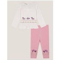 Monsoon Baby Girls Heart Top & Legging Set Size & Fit Available in sizes 0-3 Months - 18-24 Months Details Baby Girls Heart Top & Legging Set by Monsoon Light Cream Round neck with scalloped lace collar Long sleeves Frill shoulder Embroidered trims Back button fastening Frill hem Elasticated waist leggings Material & Care Material Content: Top: Cotton 100% Washing Instructions: Machine Washable