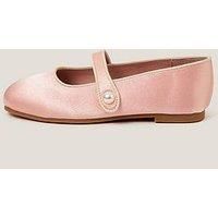 Monsoon Girls Satin Pearl Ballerina Shoes - Pink Plie-ready! The perfect party shoes for your little ballerina. Designed in a classic ballet pump style, they're made in a soft satin finish with a (faux) pearl detail at the strap. Material Content: Upper: Polyester 100%, Lining: Polyurethane (PU) 100%, Sock: Polyurethane (PU) 100%, Sole: Plastic 100% Washing Instructions: Wipe Clean