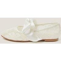 Monsoon Girls Lace Bow Ballerina Shoes - Light Cream Gorgeously girly. Crafted with dainty lace, these ballet flats are airy, cute and sure to go with every party outfit. Topped with a satin bow, they're made for showing off at weddings, communions and christenings. *Immediately adds to basket* Material Content: Upper: Textile 100%, Lining: Polyurethane (PU) 100%, Sock: Polyurethane (PU) 100%, Sole: Thermoplastic Rubber (TPR) 100% Washing Instructions: Wipe Clean