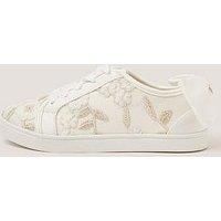 Monsoon Girls Embroidered Trainers Size & Fit Standard fit Available in sizes 7 younger - 4 older Details Girls Embroidered Trainers by Monsoon Cream Round toe Lace fastening Embroidered floral design Bow at the back Material & Care Material Content: Upper: Polyurethane (PU) 100% Lining: Polyurethane (PU) 100% Sock: Polyurethane (PU) 100% Sole: Thermoplastic Rubber (TPR) 100% Washing Instructions: Wipe Clean