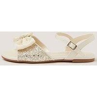Monsoon Girls Sparkle Bow Sandals Size & Fit Standard fit Available in sizes 7 younger - 4 older Details Girls Sparkle Bow Sandals by Monsoon Cream Round open toe Flat heel Ankle strap with buckle fastening Sparkly front strap with a pearl embellished bow detail Material & Care Material Content: Upper: Polyurethane (PU) 100% Lining: Polyurethane (PU) 100% Sock: Polyurethane (PU) 100% Sole: Thermoplastic Rubber (TPR) 100% Washing Instructions: Wipe Clean