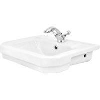 A beautiful traditional 550mm wide semi recessed basin from our oxford range. This stylish basin has been designed specifically to be mounted into a worktop or vanity unit. The classic design will be perfect for traditional style furniture units. Complete the look with our range of traditional taps and wastes. available separately.