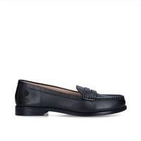 The Snap loafer from Carvela features a black leather upper with a leather strap.