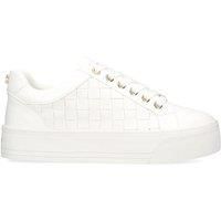 The Carvela Checker trainer is crafted in white with woven effect to the sides of the trainer. The front laces up with rose gold eyelets and there is two branding details at the back. | Carvela Women's 'Checker' Trainers in White | Size: 3