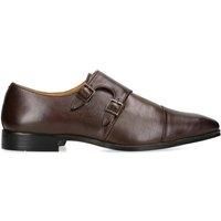 The monk style Collins formal shoe is crafted from a brown smooth leather. The front features two buckled straps across the front of the shoe with a raised stitch toecap detail. The heel has a slight elevation.