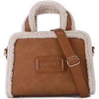 This Mini Bella Borg Tote Bag features a brown fabric exterior with beige faux Borg trim. There is embossed rectangle branding on the front. 19cm (H), 26cm (L), 12cm (D). Strap length: 120cm. - Manufacturers part number: Carvela_5045656810516