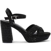 The KG Kurt Geiger Fleur Platform bling block heel features a black fabric upper embellished with black crystals. The ankle strap is fastened with a silver buckle. Heel height: 6.5cm.