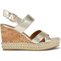 The KG Kurt Geiger Pearl is a wedge heel. There are gold straps across the foot. The wedge heel is in a cork style with statement gold studs around the base. Heel height: 9cm. | KG Kurt Geiger Women's 'Pearl' Heels in Gold | Size: 6 - Manufacturers part number: KG Kurt Geiger_5045657727363