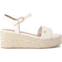 This Treccia Flatform sandal features a bone upper with a woven toe strap. There is a gold branded buckle fastening the ankle strap. Sole height: 6cm. This product features All Day Long technology. | Carvela Women's 'Treccia Flatform' Sandals in Cream | Size: 3