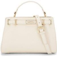 This Carvela Violet Belted Midi bag arrives in bone with a statement strap belt detail. There is gold hardware across the bag. Dimensions: 18cm (H), 27cm (L), 11cm (D). Strap length: 122cm. | Carvela Women's 'Violet Belted Midi' Bag in Cream