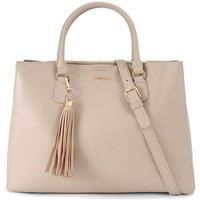 This Carvela Como Large Tote Bag is crafted from a beige leather alternative. There are gold tone details across the exterior of the bag and a tassel charm on the top handles. Dimensions: 26 cm (H), 36 cm (L), 13 cm (D). Strap length: 126cm. | Carvela Women's 'Como Large Tote' Bag in Taupe - Manufacturers part number: Carvela_5045658814376